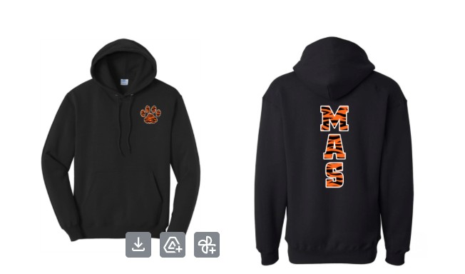 MAS tiger stripe sweatshirt. Available in kids and adult sizes.